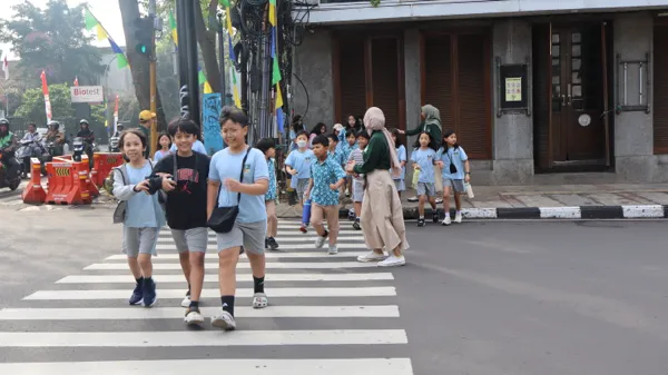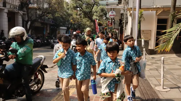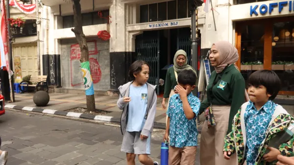 Ketika anak-anak berjalan di lingkungan terbuka, mereka tidak hanya belajar tentang sains dan lingkungan, tetapi juga berinteraksi dengan masyarakat sekitar — pedagang, pejalan kaki, bahkan wisatawan.